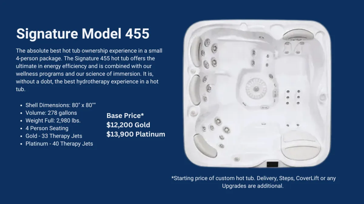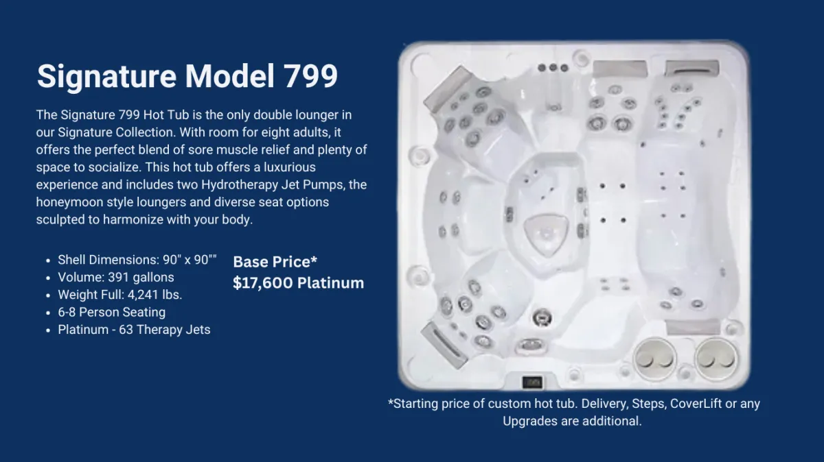 Ready to see how much your dream hot tub will cost with all your favorite features? Explore all the options with our team to get a same day estimate with your requests included.